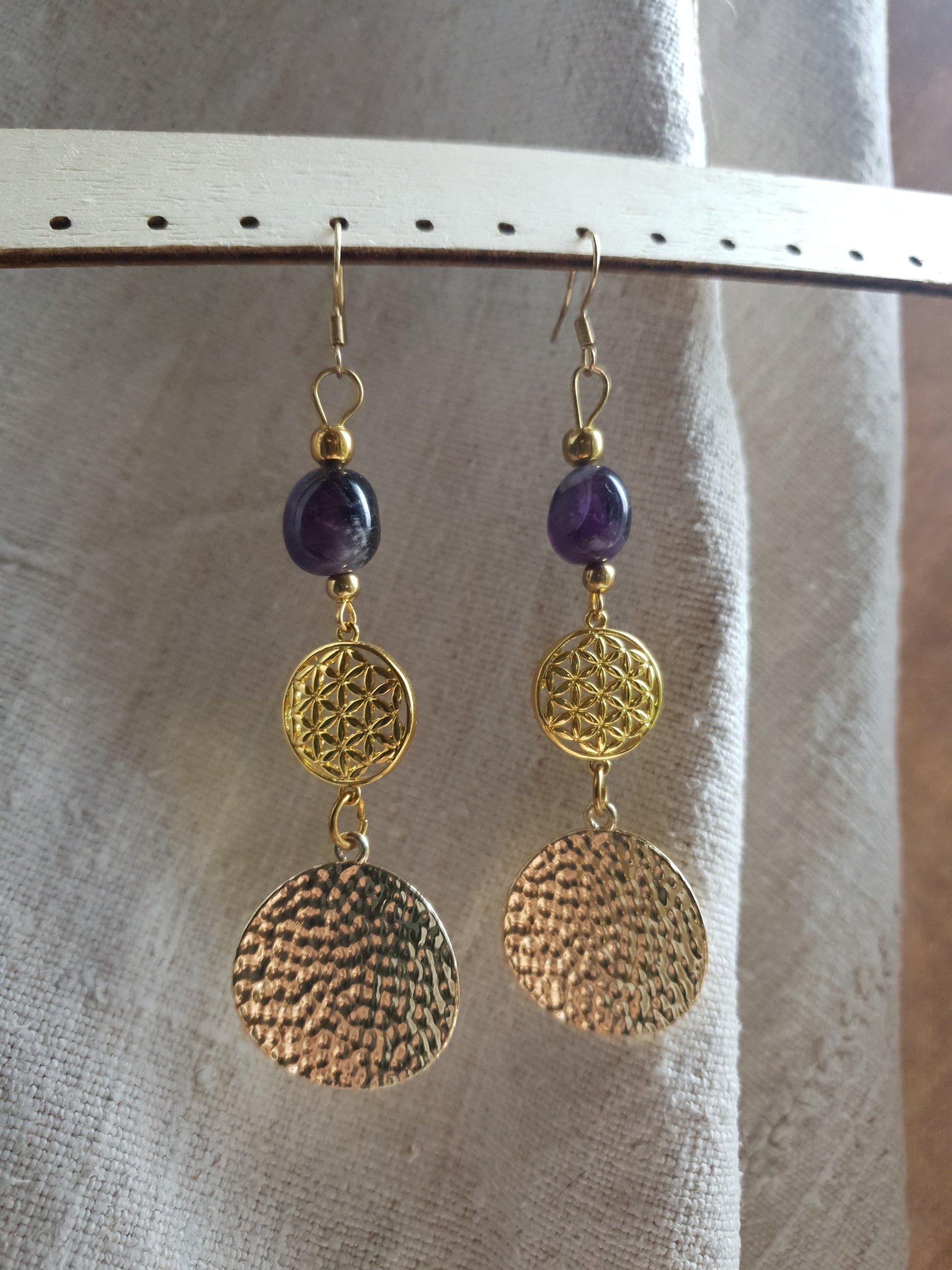 ametist naušnice - pozlačeni cvijet života