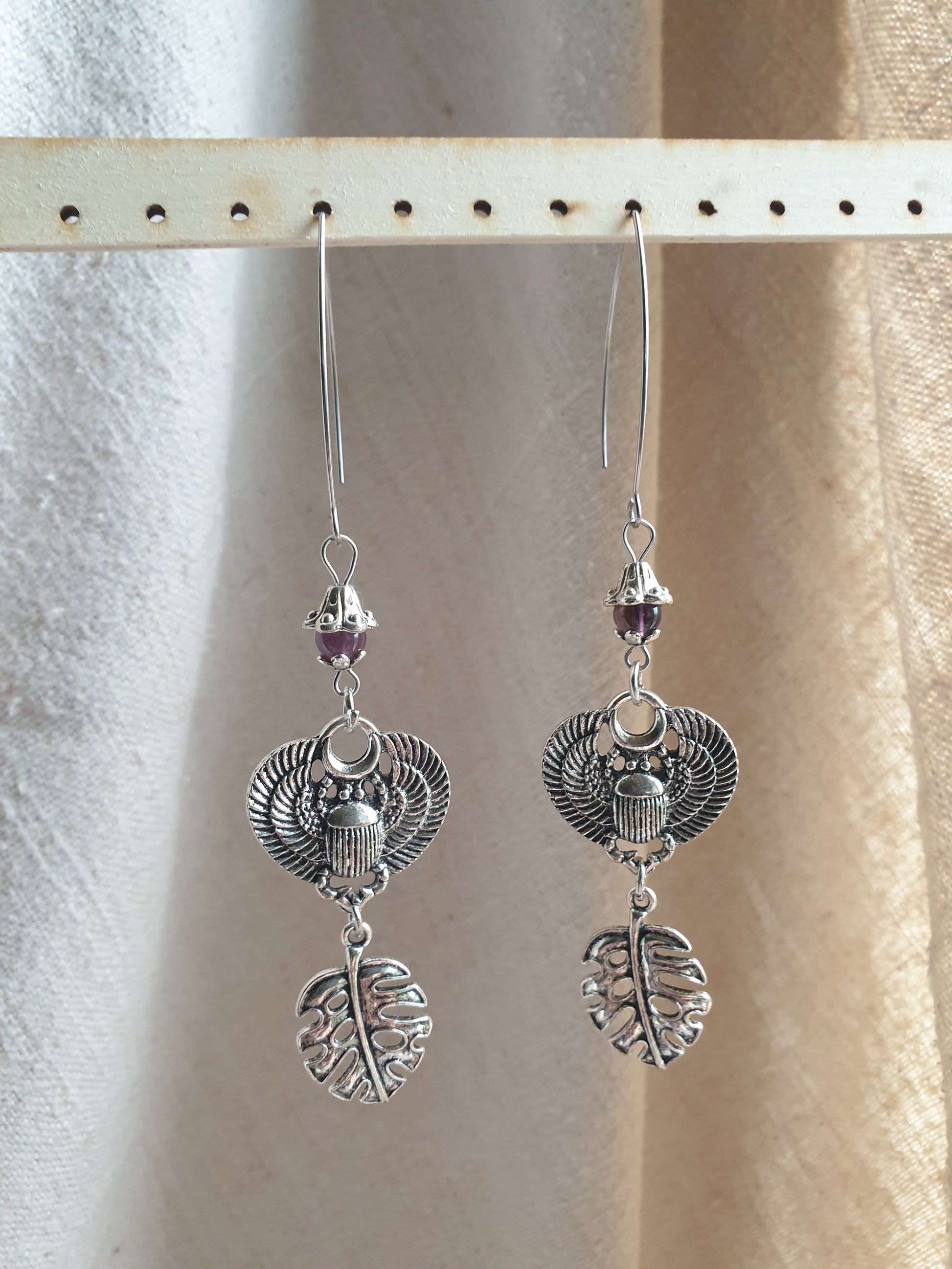 ametist skarabej naušnice