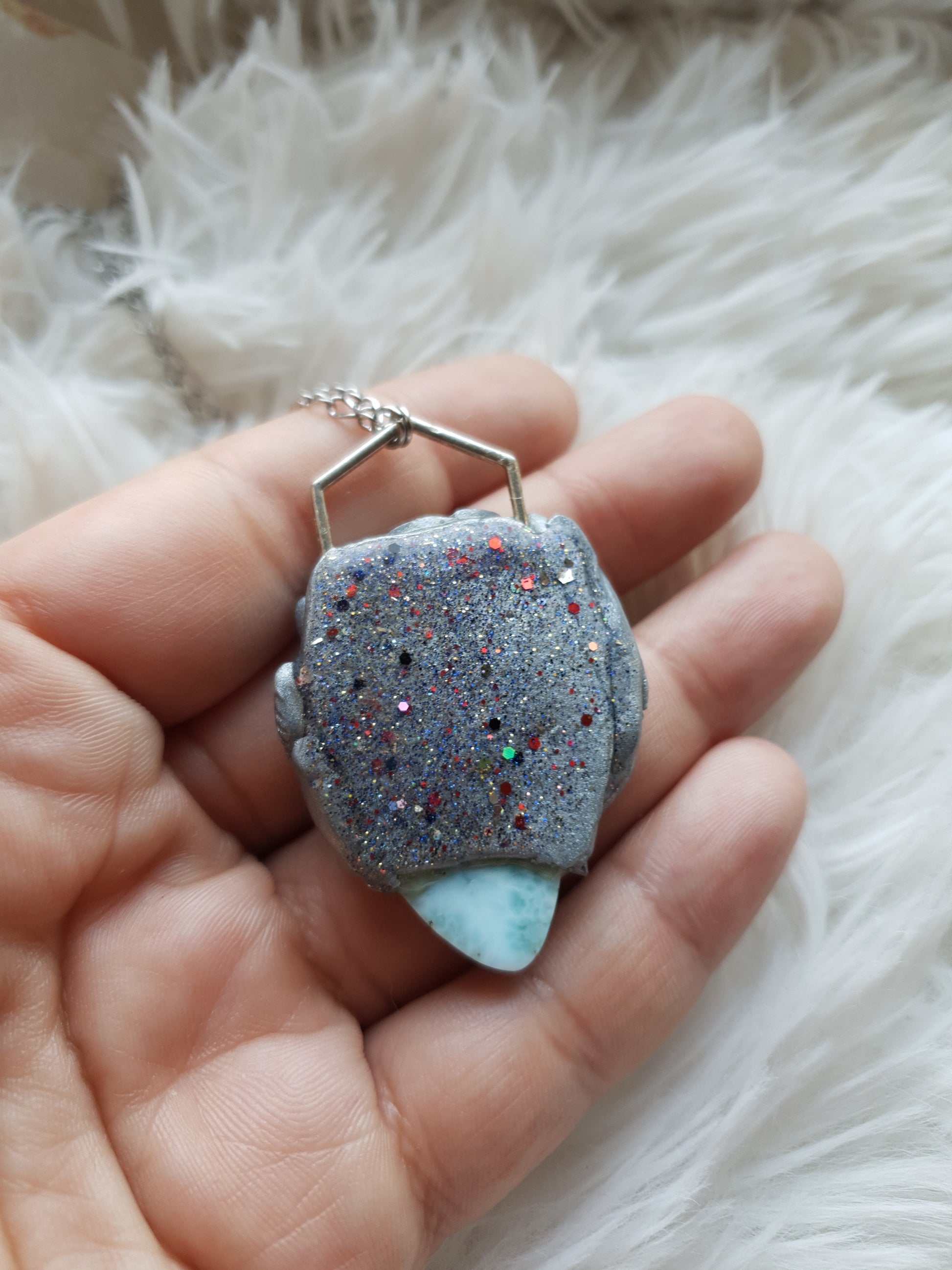 Unikatan ručno oblikovan privjesak od polimerske gline larimara i etiopijskog opala.