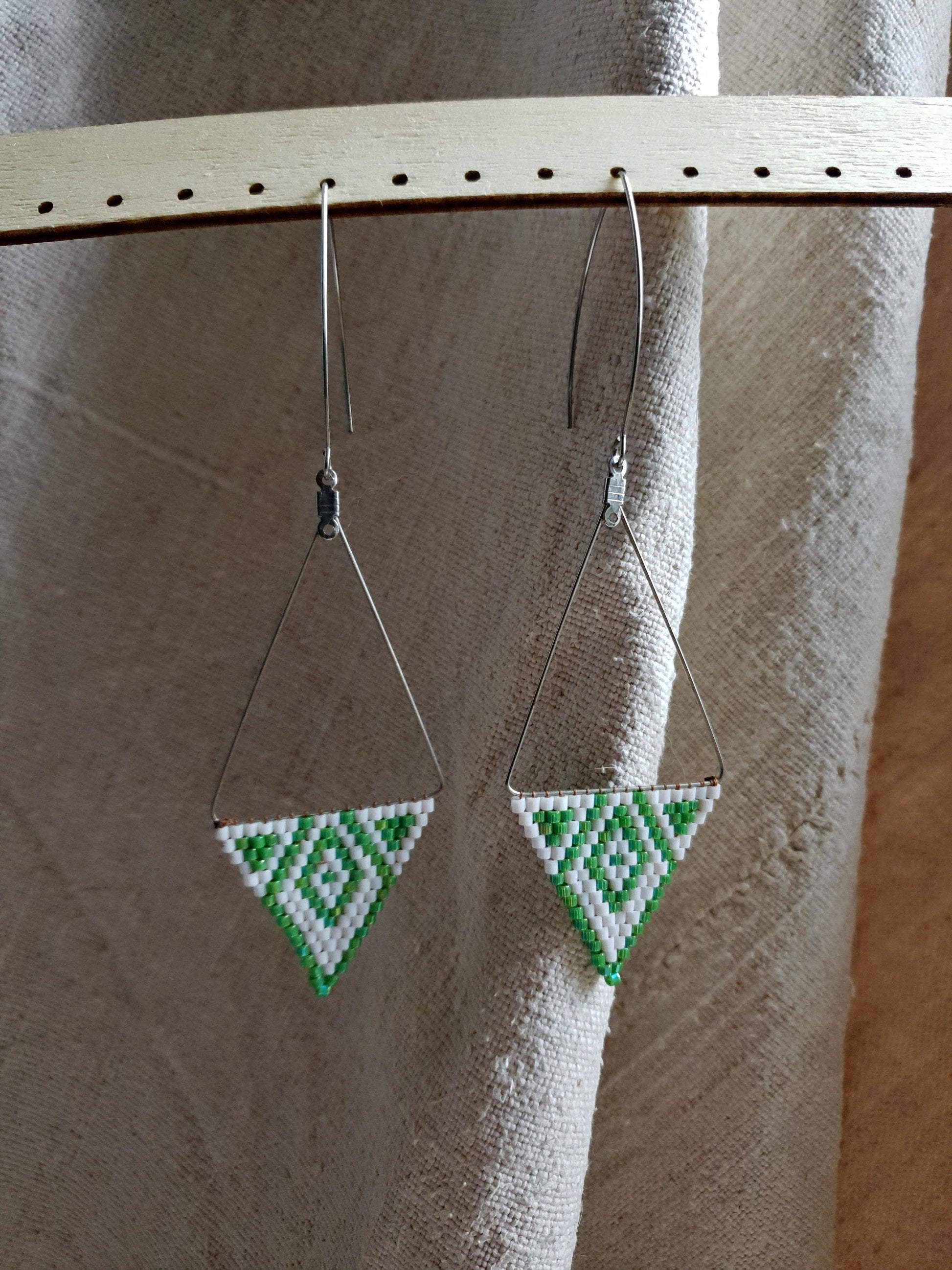 Ručno izrađene viseće naušnice kombinirane od miyuki staklenih perli i komponenti od nehrđajućeg čelika. Lagane, izdržljive i idealne za svakodnevno nošenje.