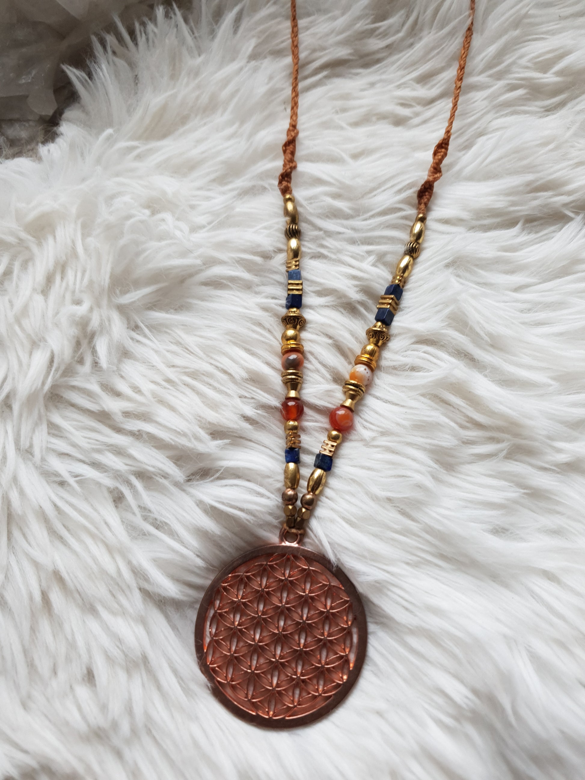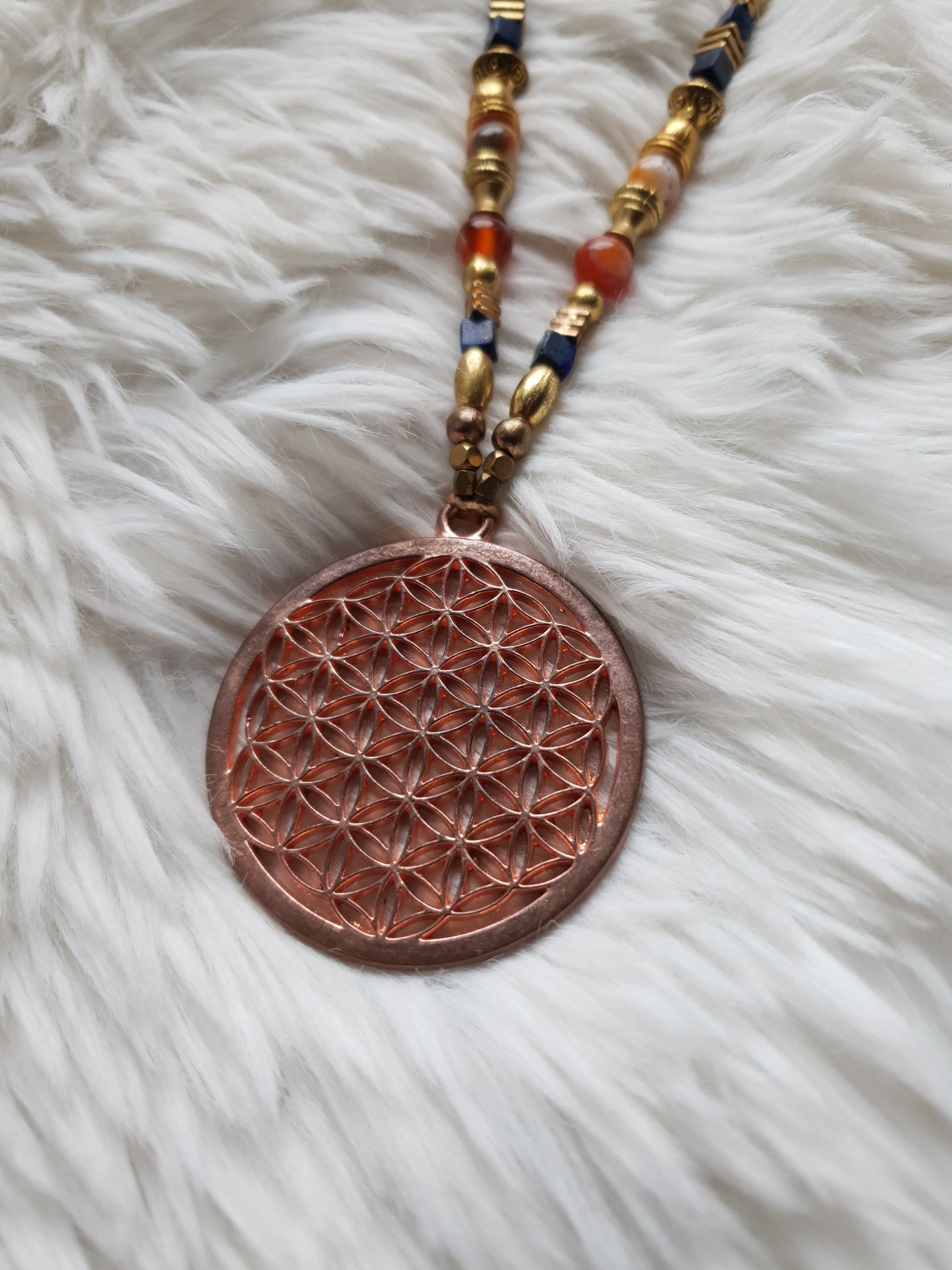 ogrlica cvijet života - lapis lazuli - karneol