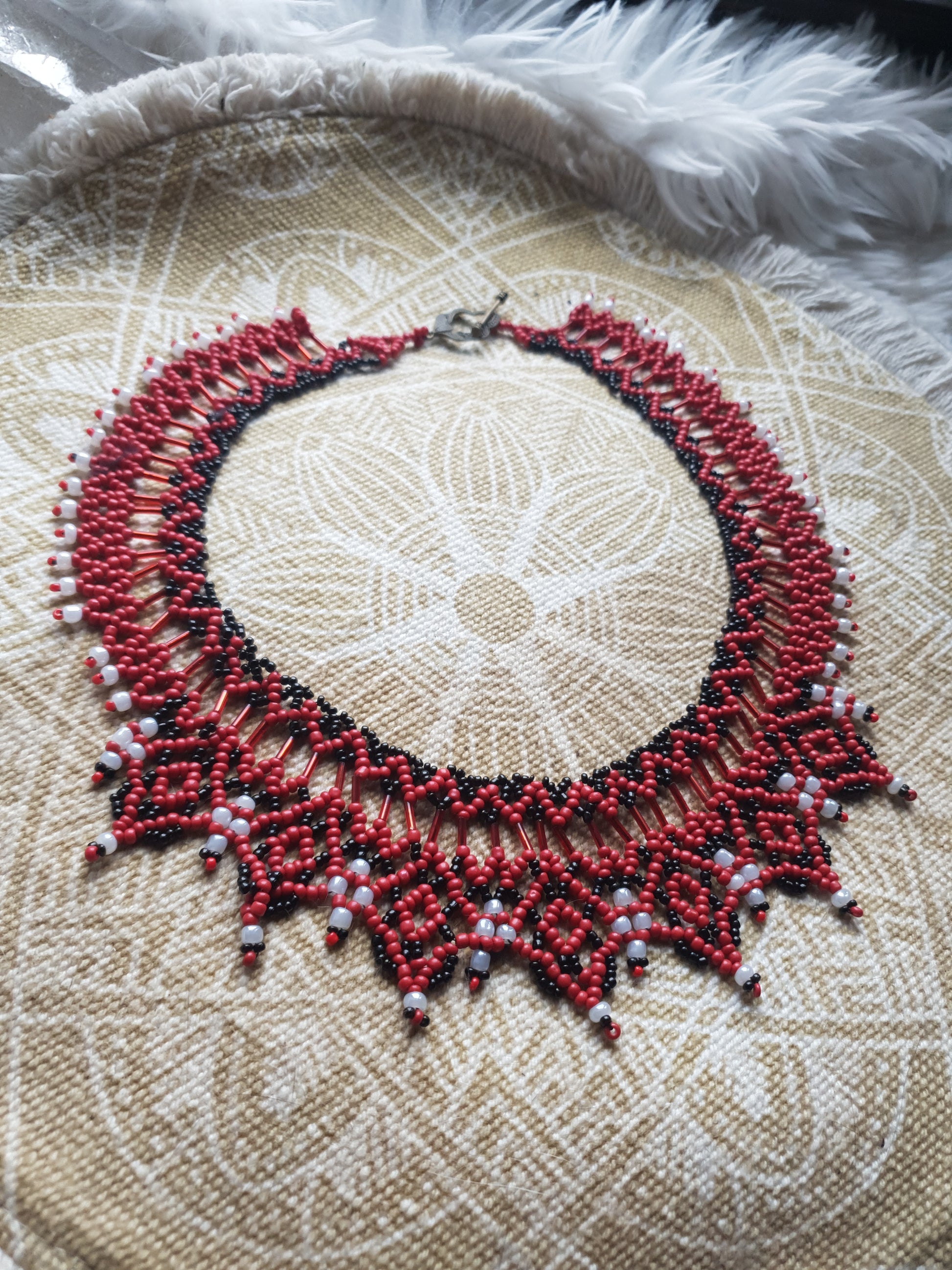 ogrlica od staklenih perlica - bjela - crvena - crna - tradicijski nakit