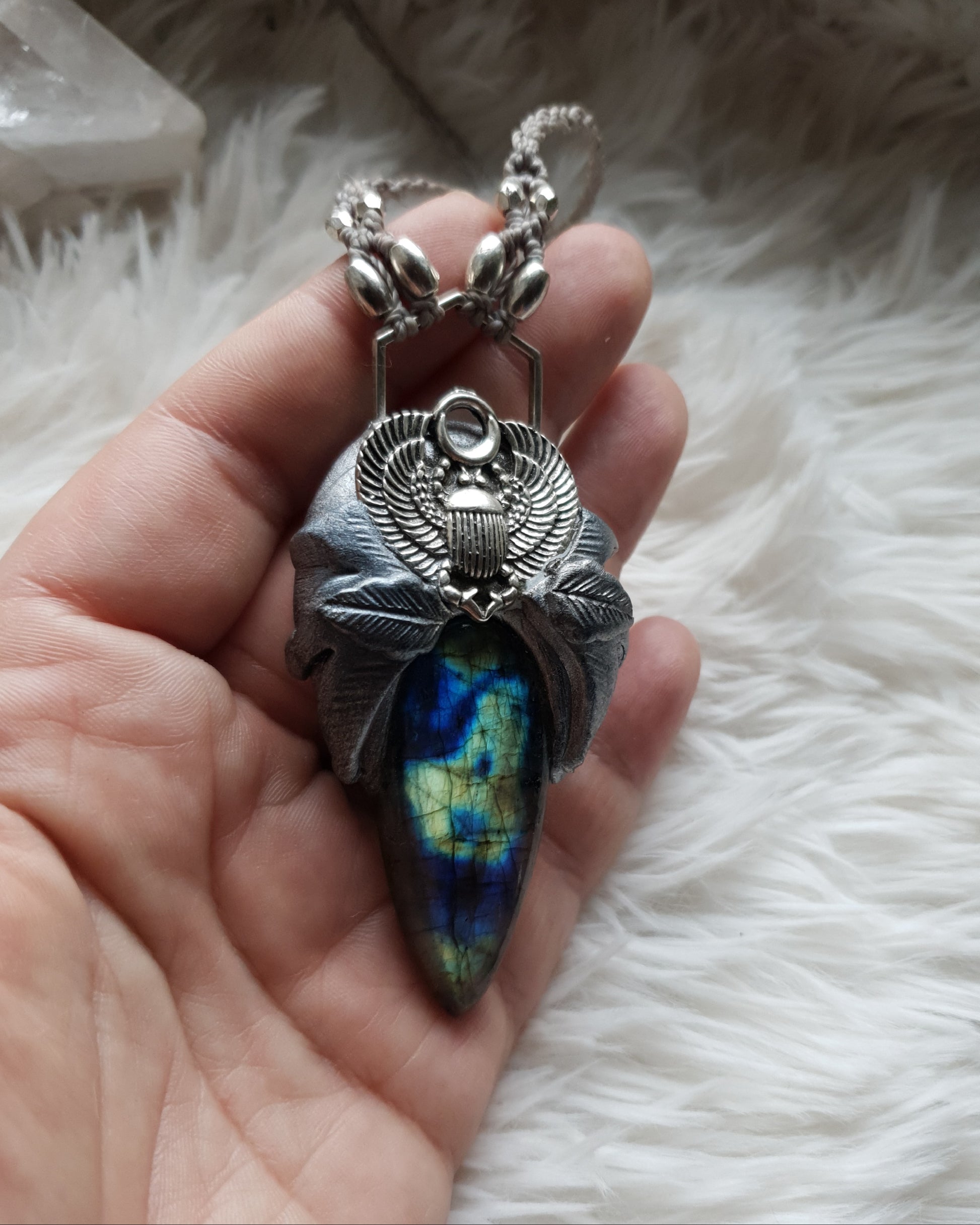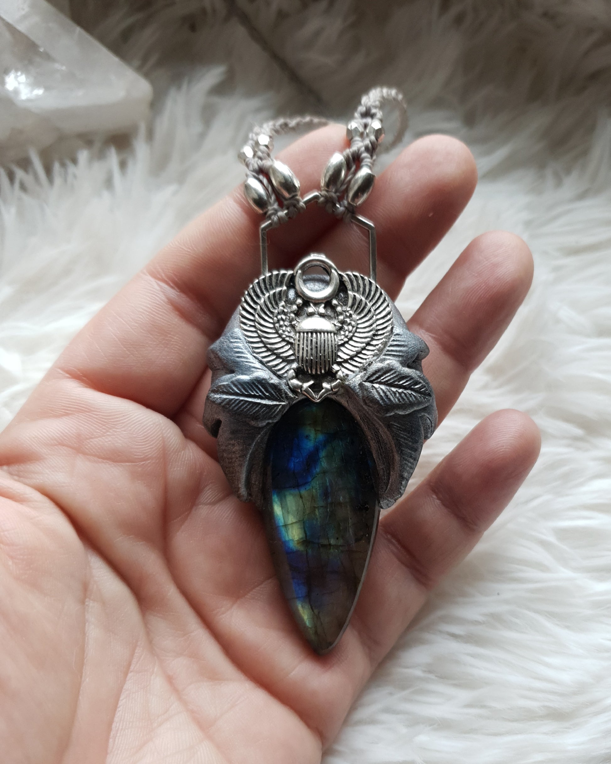 plavo zeleni labradorit skarabej privjesak - khepri