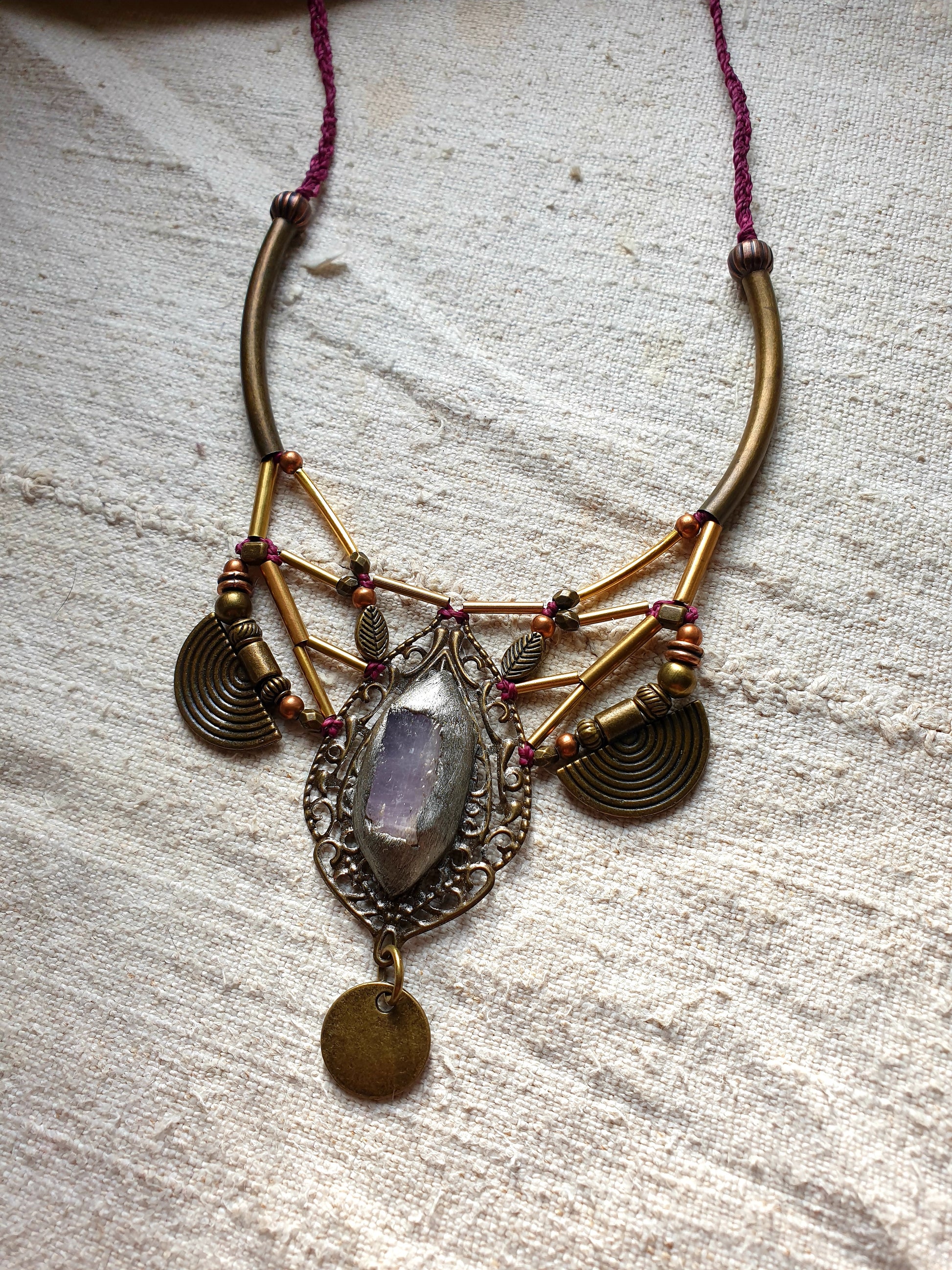 Središte ogrlice nosi rozi kunzit zaštićen polimernom glinom.