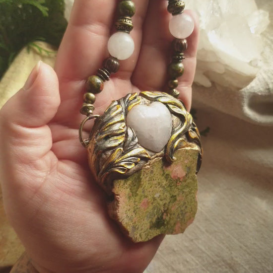 unakit i rozen kvarc - statement ogrlica
